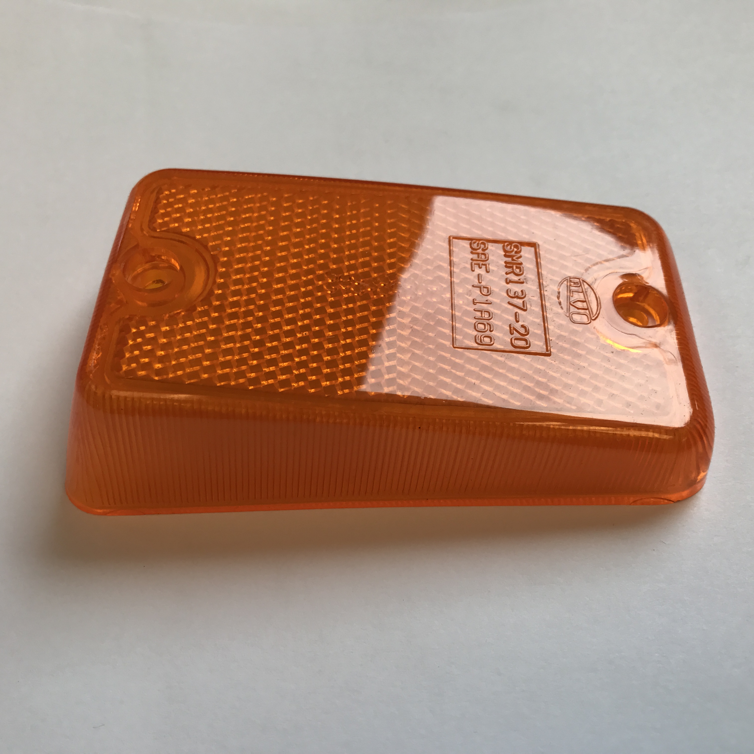 Side Marker Lens for Volvo P1800. The lens is AMBER in color as seen in the photo and fits the REAR left OR right side.
